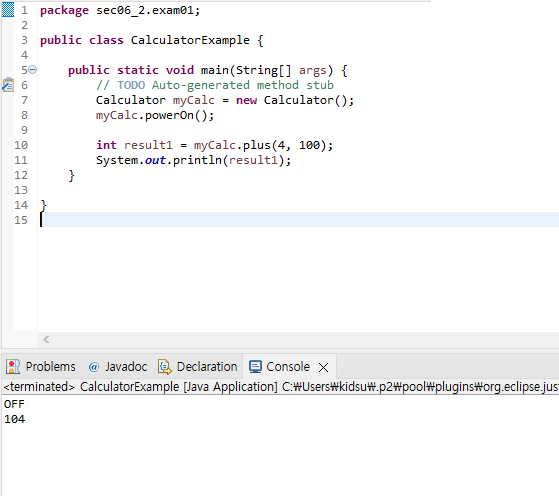 int result1 = myCalc.plus(4, 100);