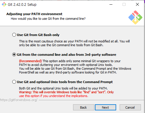 Git과 Unix 도구 를 모두 환경변수에 추가한다는 것입니다.(경고)