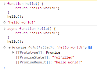 처음에는 그냥 hello world!를 반환하지만 async를 붙였을 경우 Promise를 반환한다.