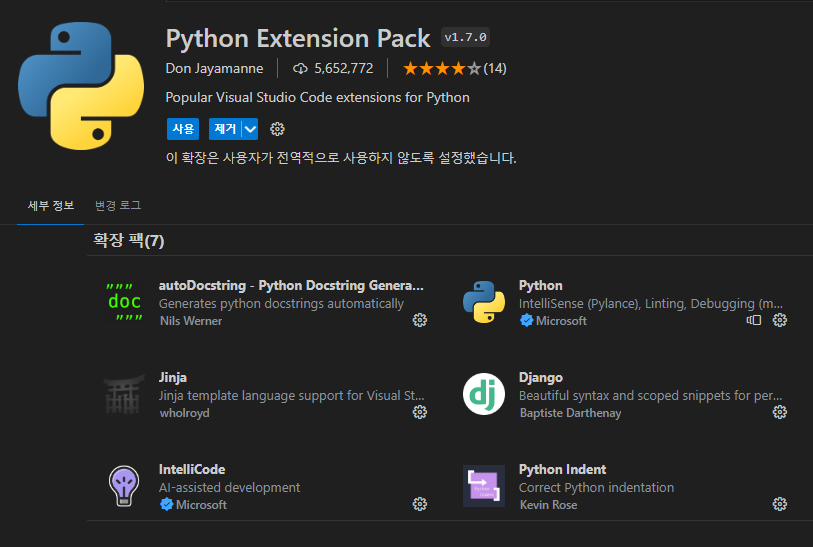 - 파이썬 확장 팩도 다운해줍니다.