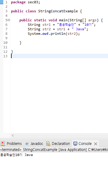 String str1 = "혼공학습단" + "10기";